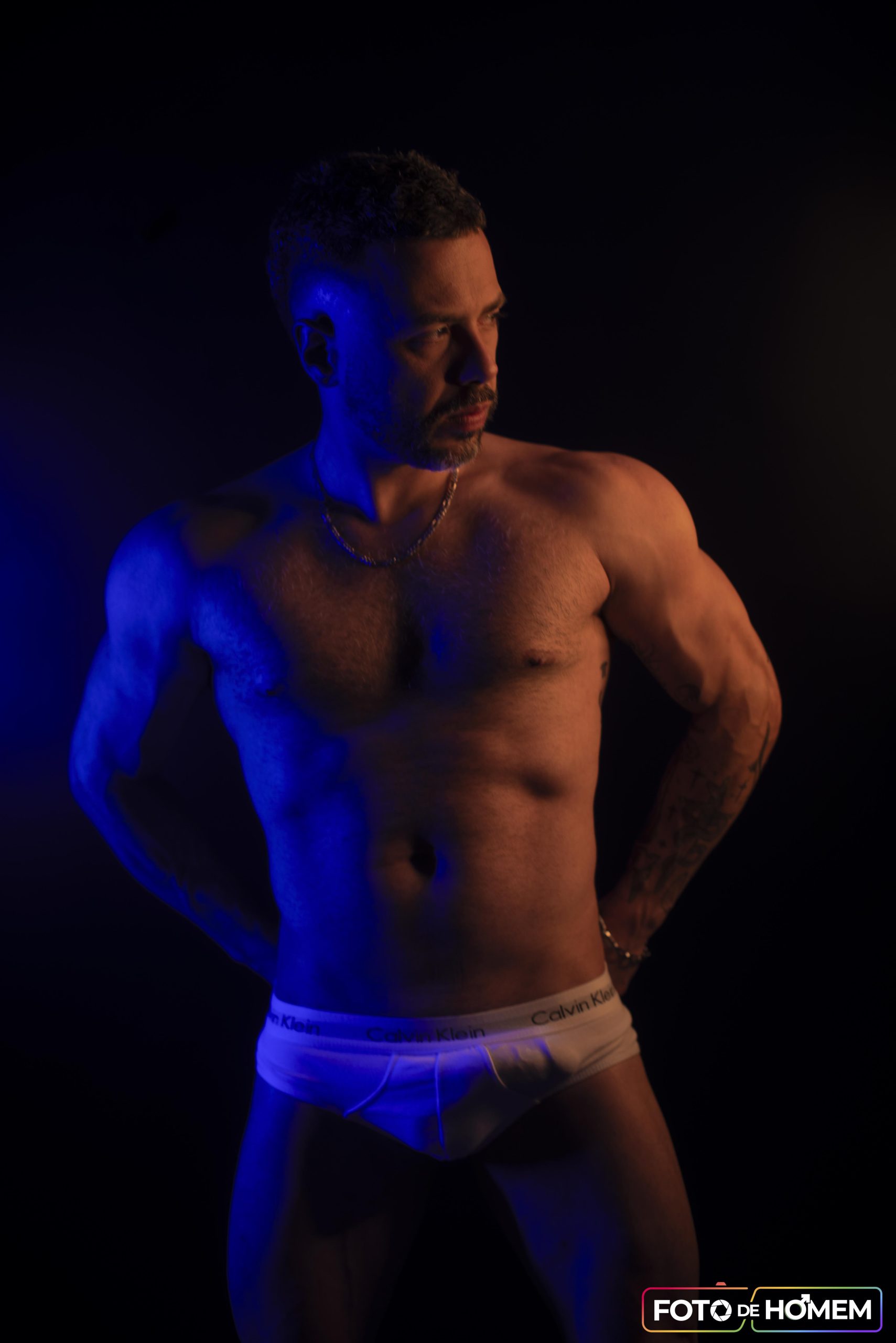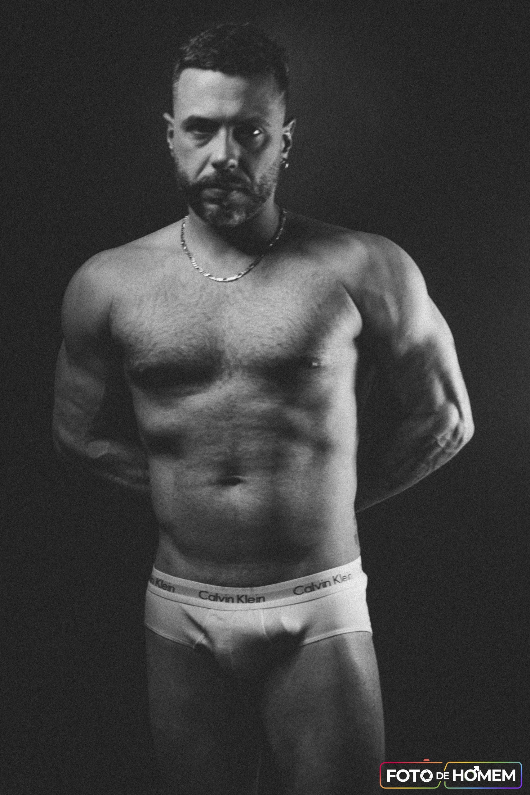 André afirma que desconstruir realidades é o primeiro passo para criar novas formas de ver e viver o mundo e por isso topou a experiência de posar nu para o Foto de Homem. “Fazer o ensaio com o Eberson foi uma vivência de entrega e autodescoberta. Mais do que posar diante da câmera, foi me permitir estar vulnerável, despido de máscaras e camadas, em um espaço de confiança criado junto a ele”.