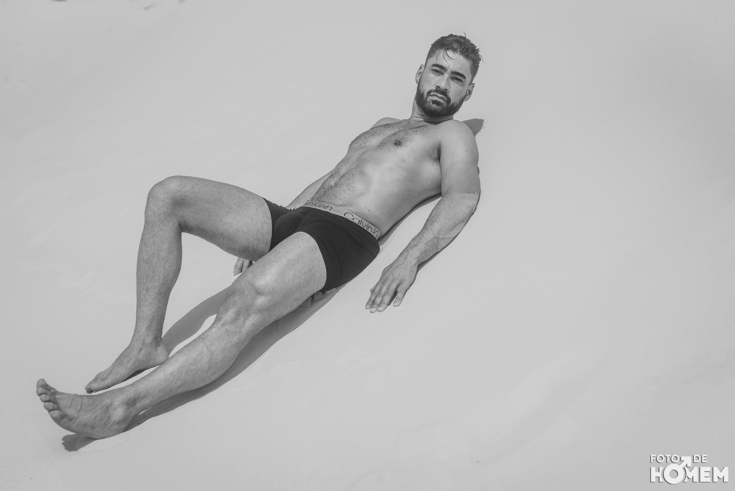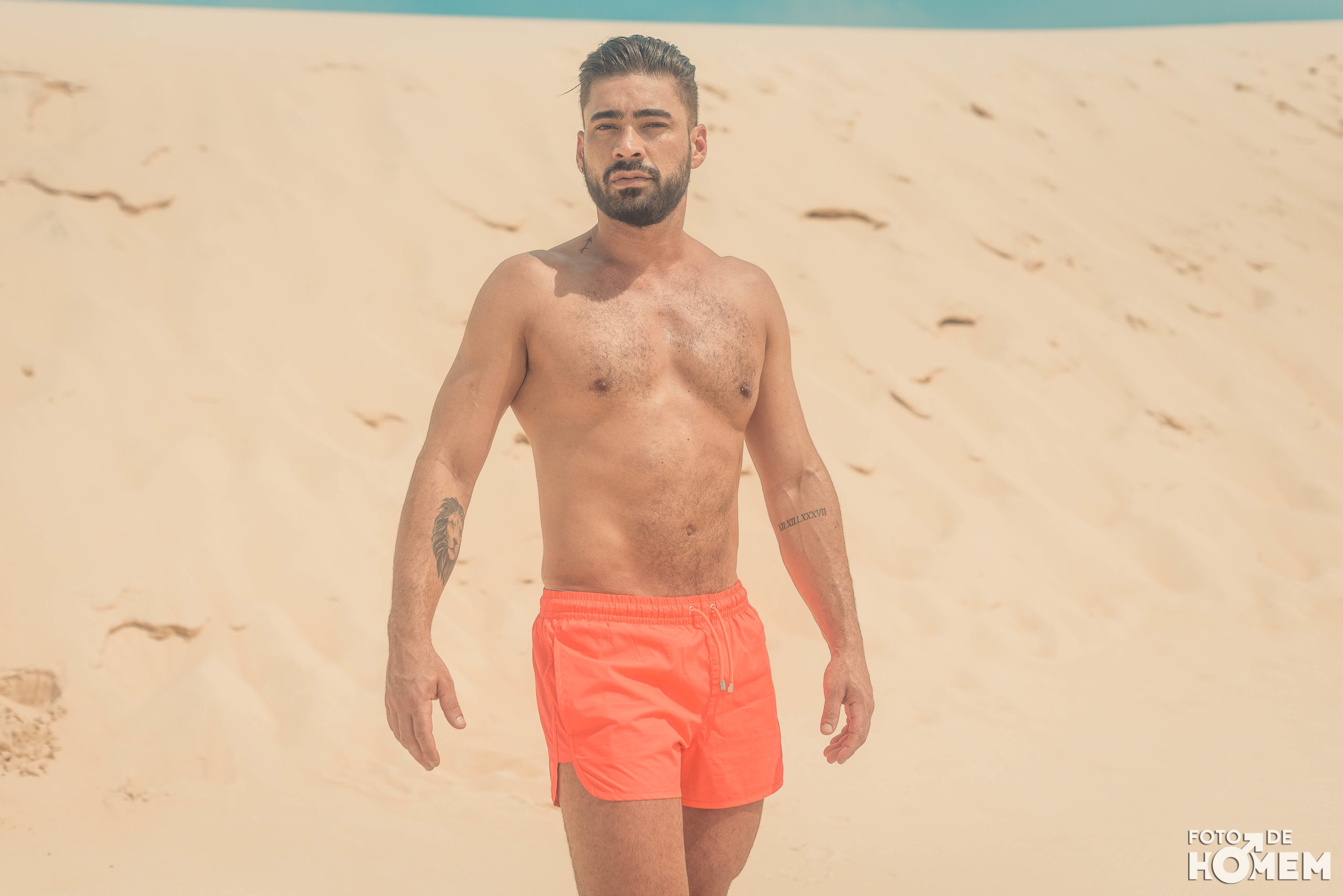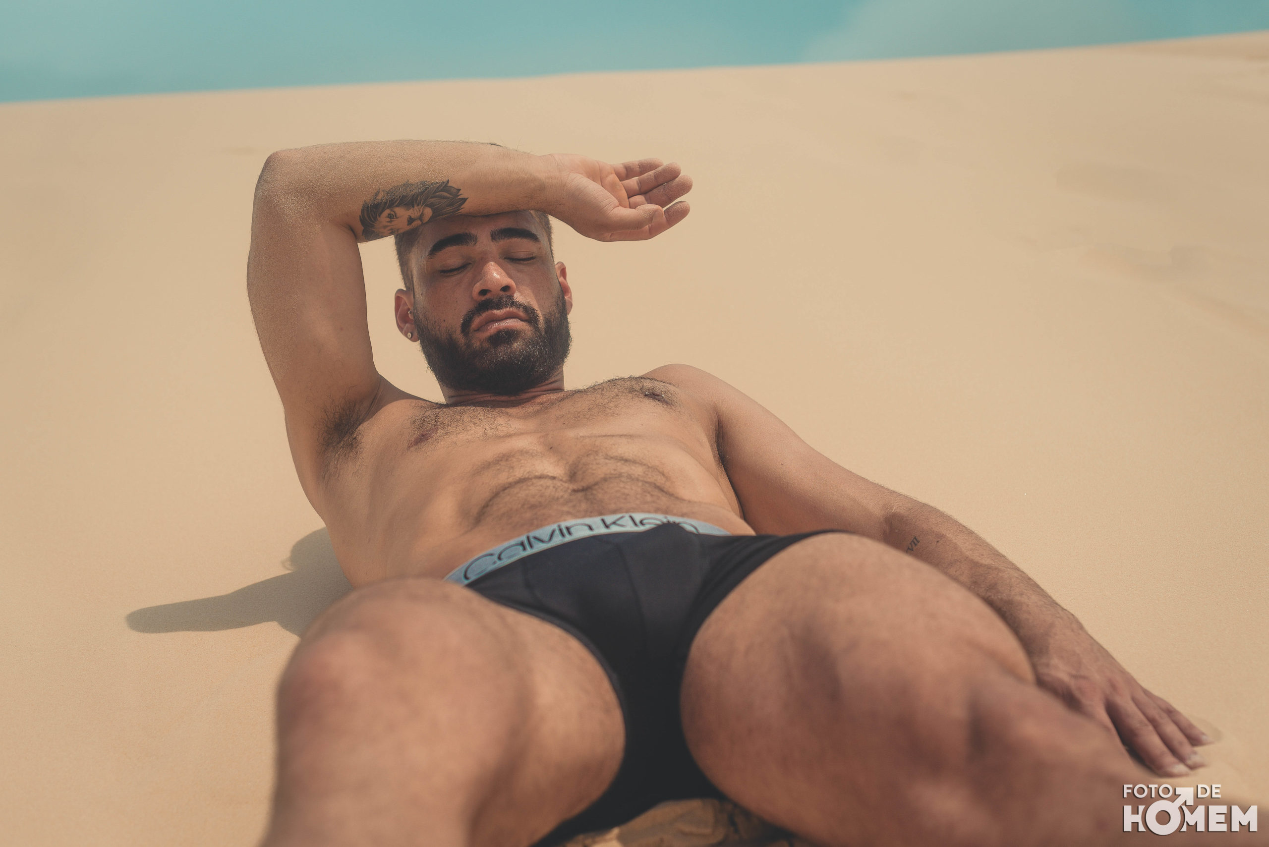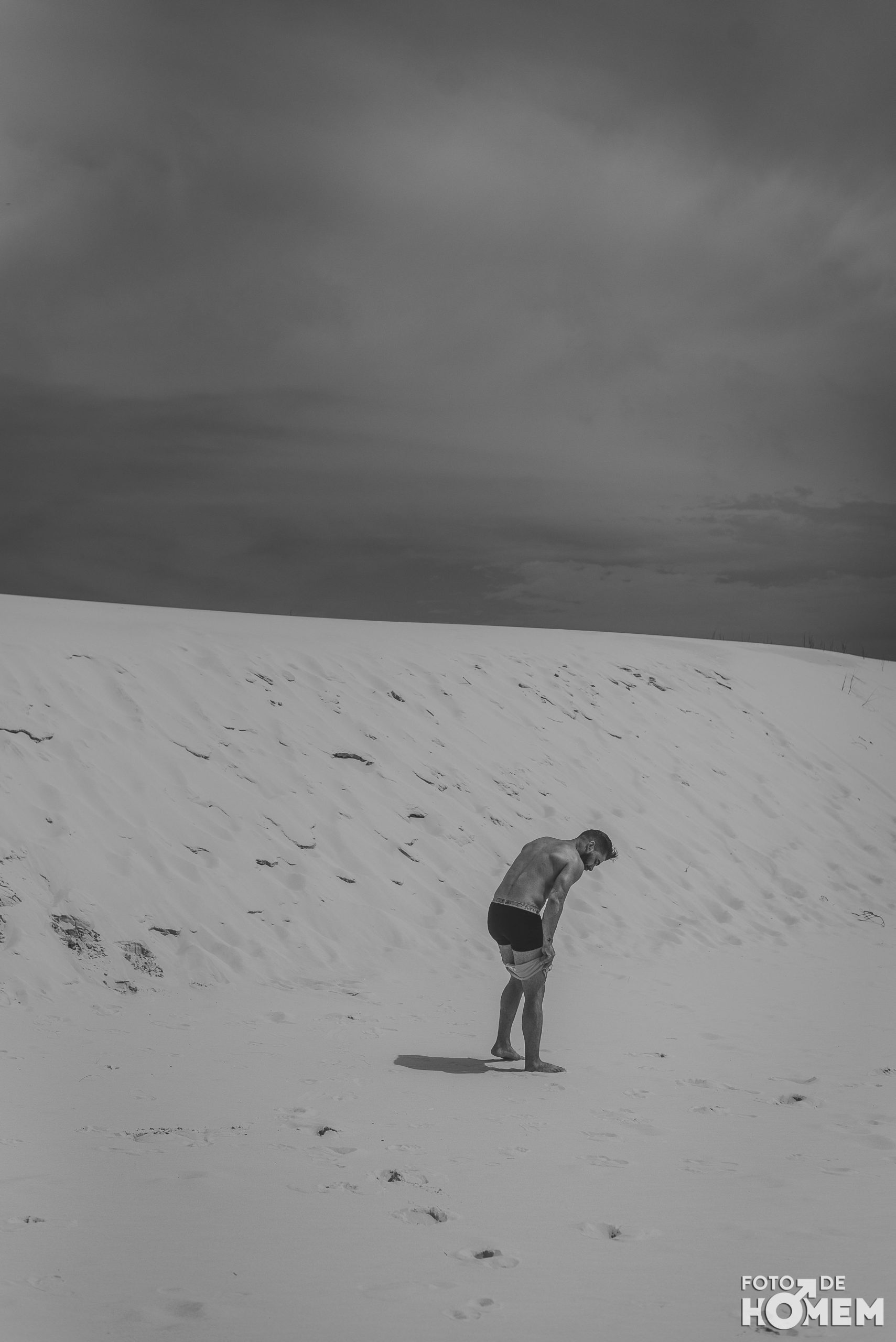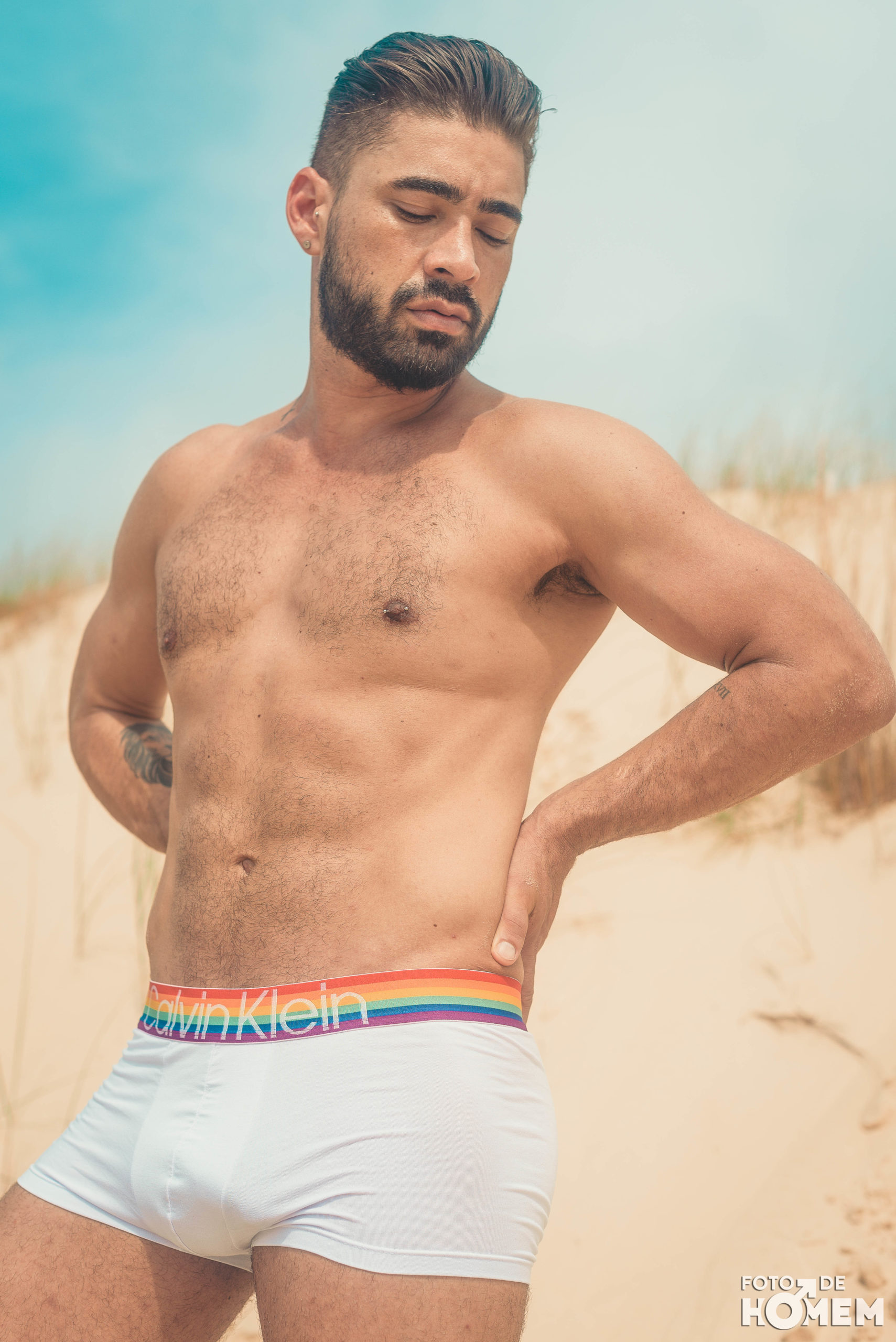 Debaixo de um Sol escaldante sobre as dunas da praia da Joaquina, em Florianópolis, fotografei o Jean nu em pelo. Os cenários são de tirar o fôlego e o modelo não teve nenhuma dificuldade em tirar a roupa.