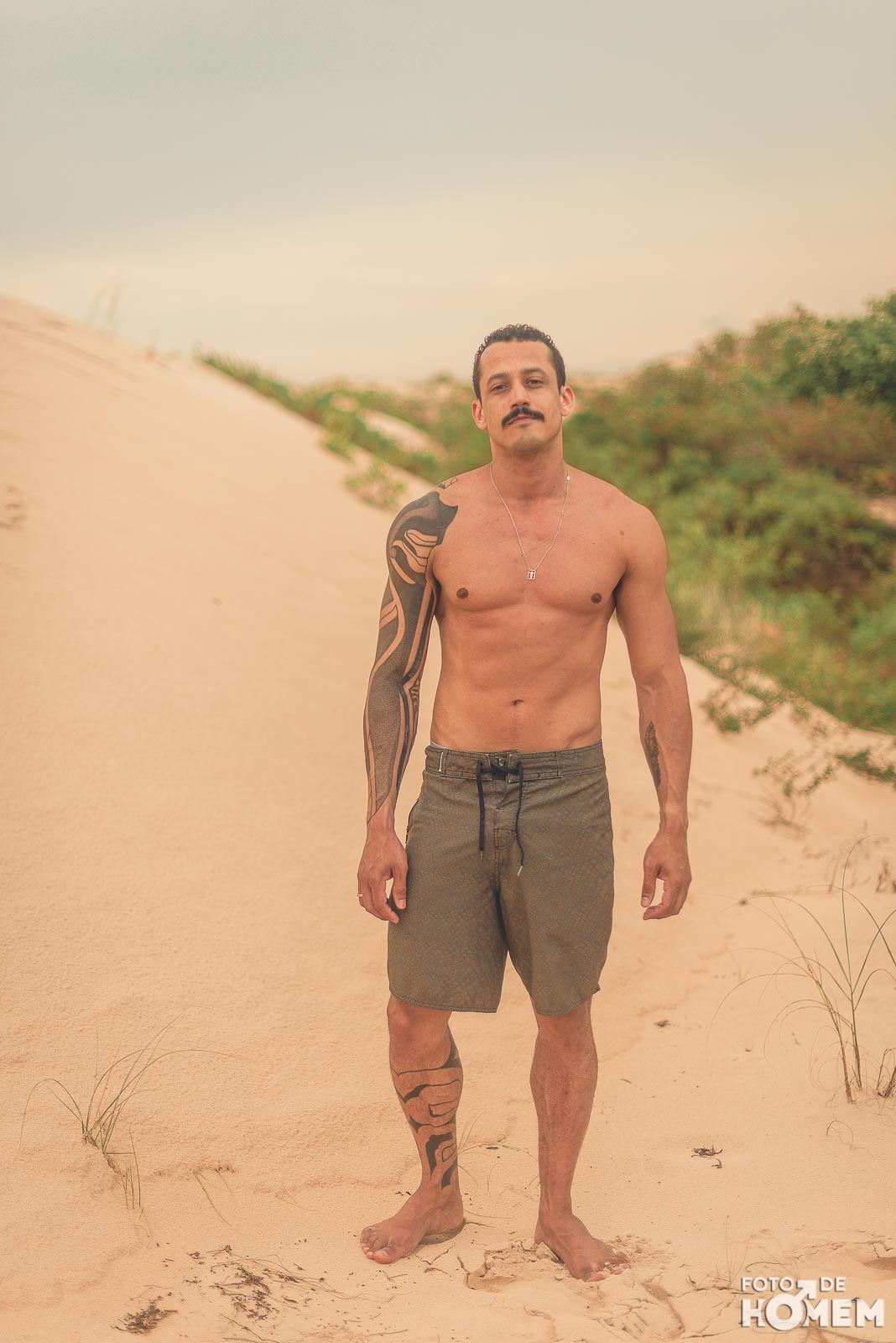 No entanto, ao ir a Florianópolis, isso foi bastante possível. E o Dias foi o primeiro modelo que fotografei “outdoor”, nas dunas da Barra da Lagoa, na capital de Santa Catarina.