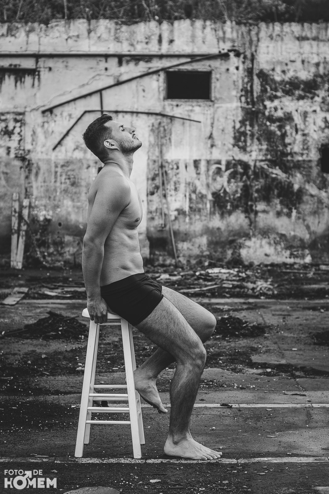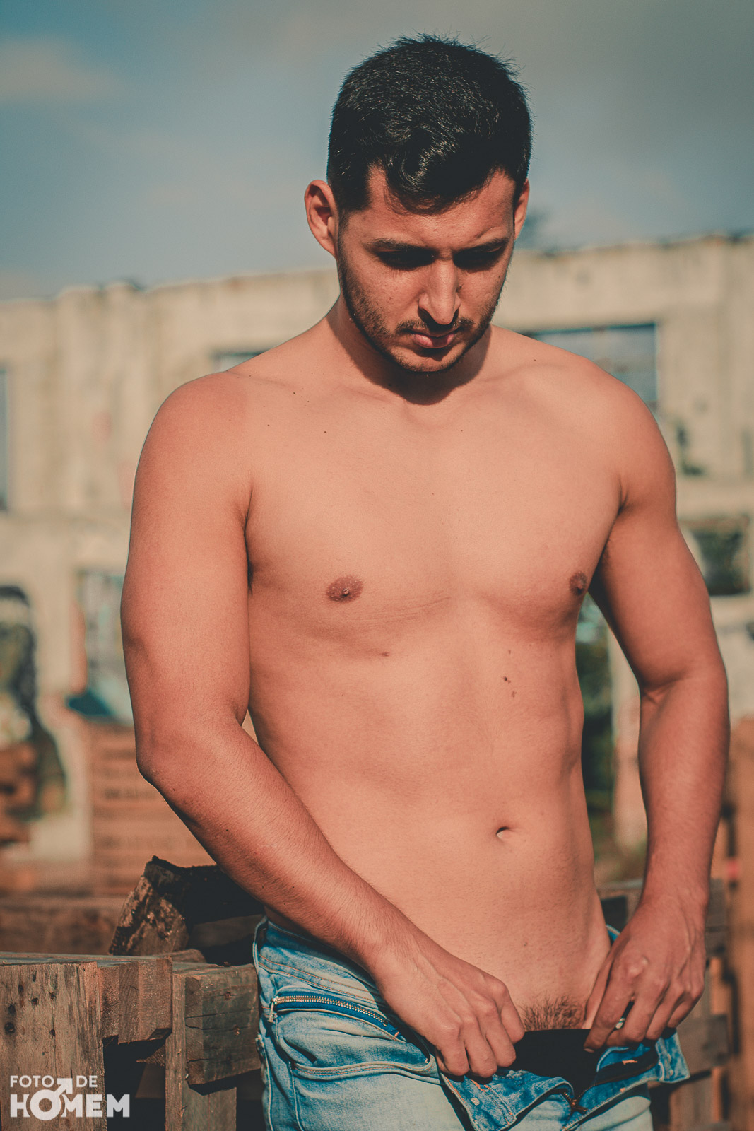 A sessão foi num galpão de uma antiga empresa em Joinville (SC), lugar bastante propício para um ensaio de nu. Caubi gostou bastante de participar de uma sessão para o site. “No início fiquei um pouco nervoso, mas o fotógrafo Eberson foi levando a sessão tranquilamente e me passou bastante segurança”, relata o jovem.
