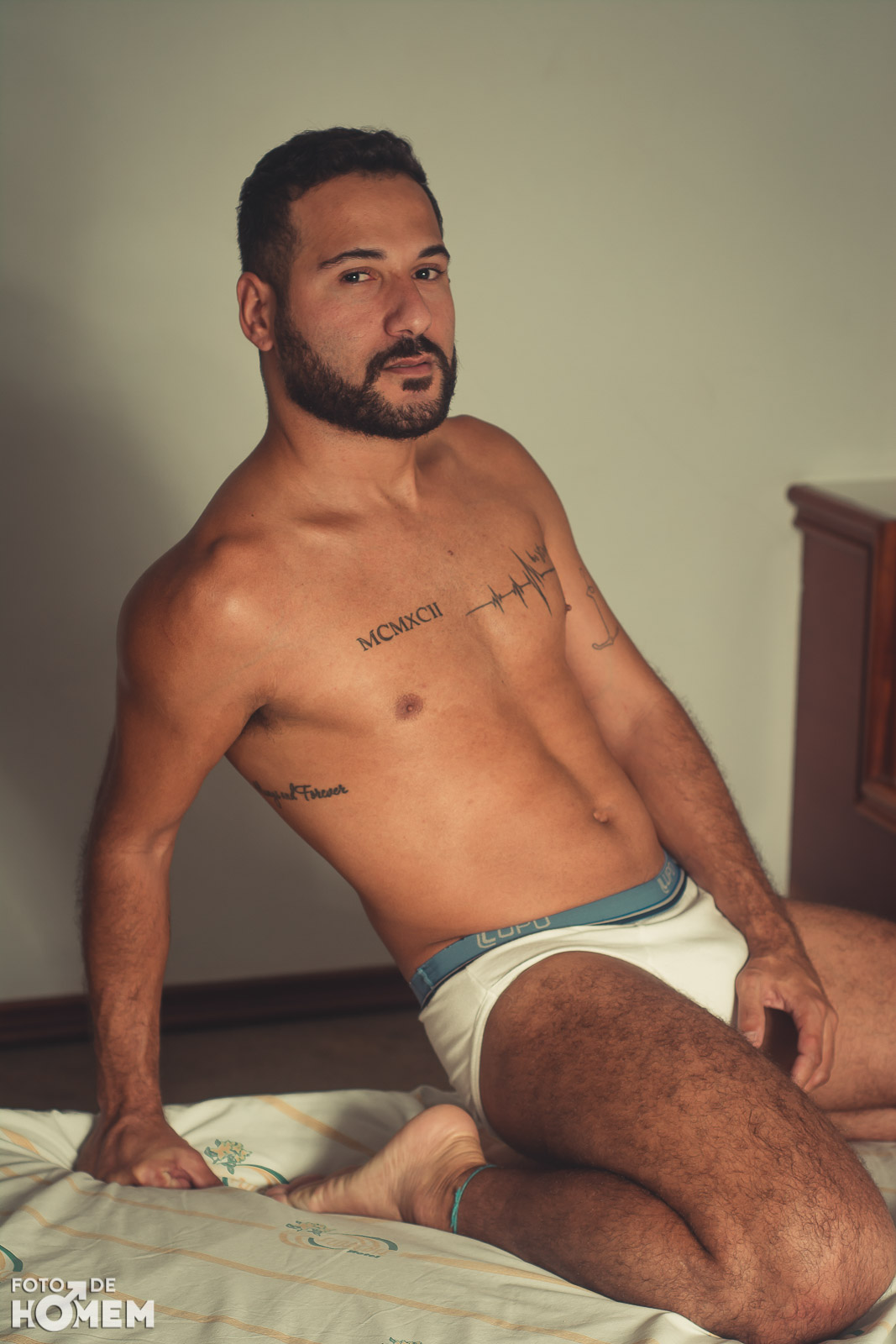 Posar pro site, segundo ele, foi uma experiência tranquila no começo. “O Eberson me passou confiança. Só fiquei nervoso na hora de ser fotografado com ereção, mas consegui me concentrar na sessão e tudo ocorreu bem”, confessa o designer.