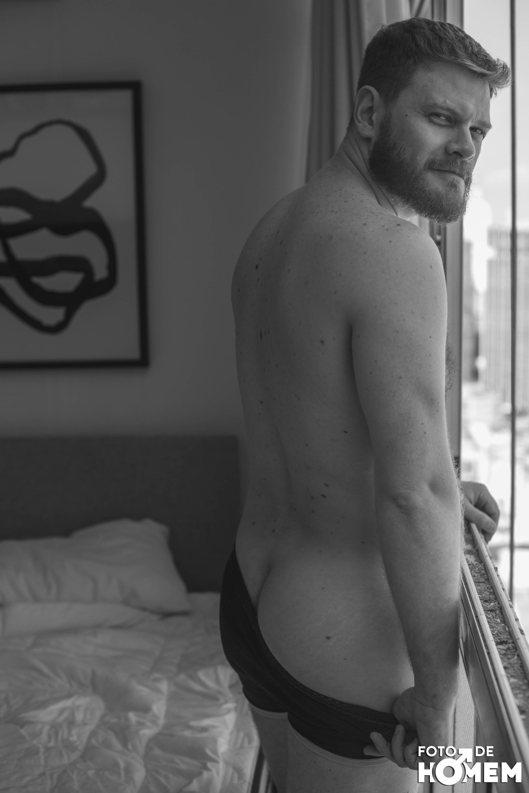 O ensaio de hoje é com o Felipe, fotografado em São Paulo, no edifício Copan, em fevereiro. Ele, que já foi controlador de tráfego aéreo, revelou toda a sua nudez para o Foto de Homem.