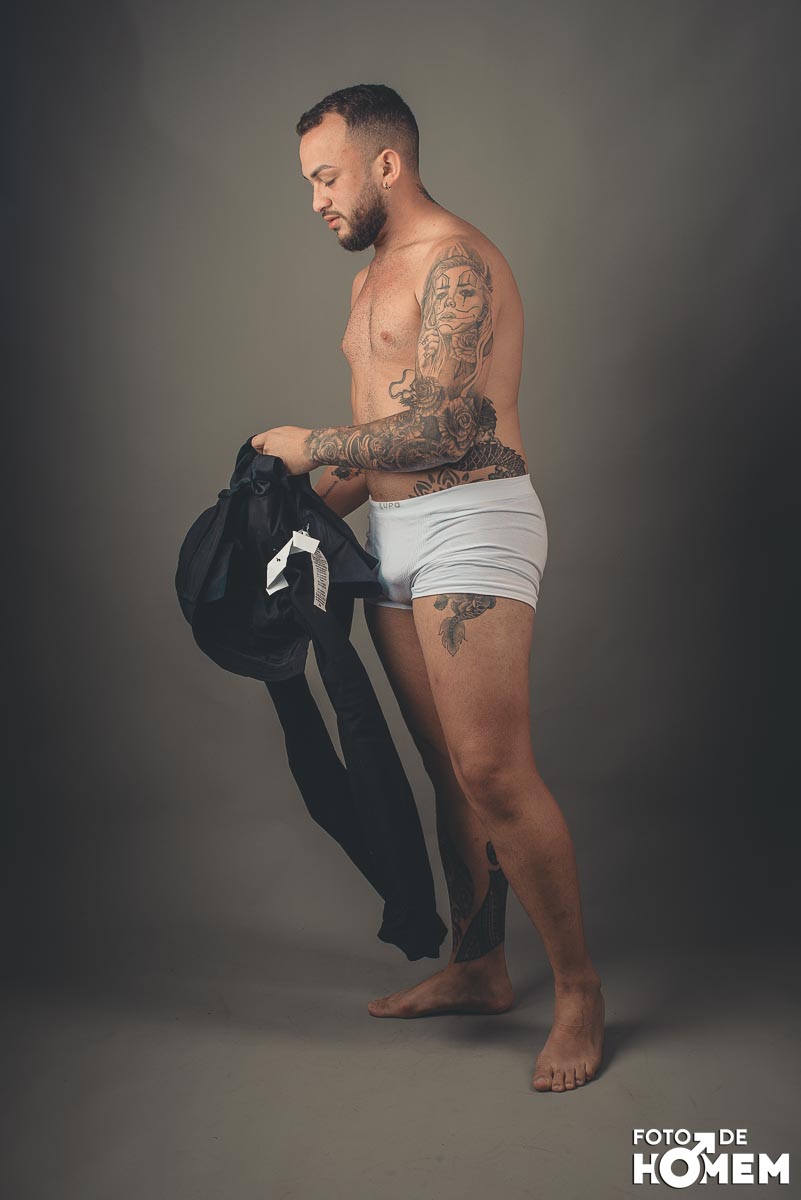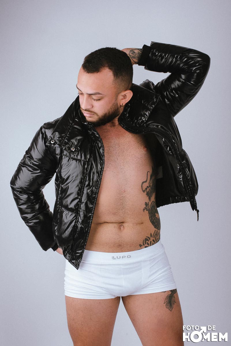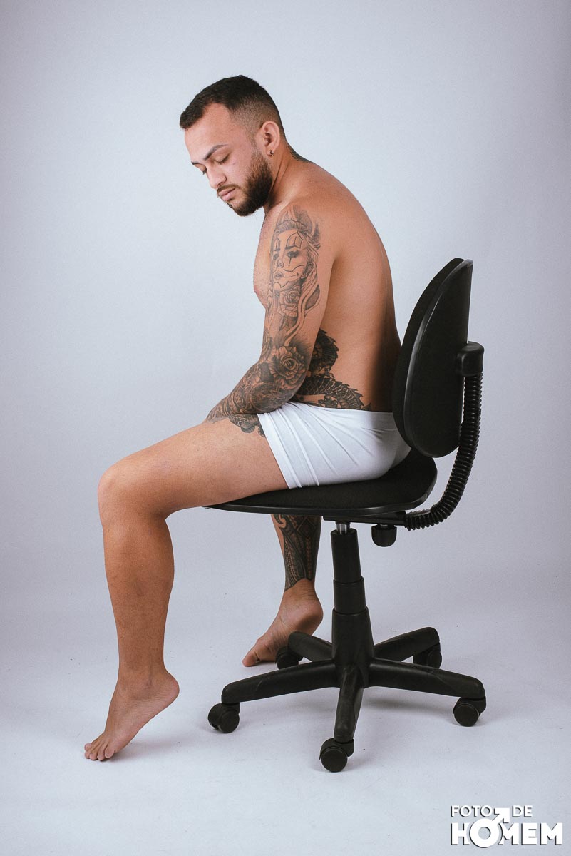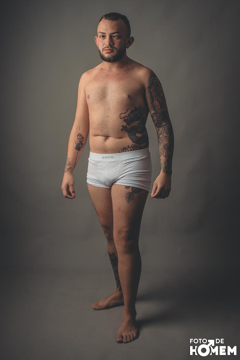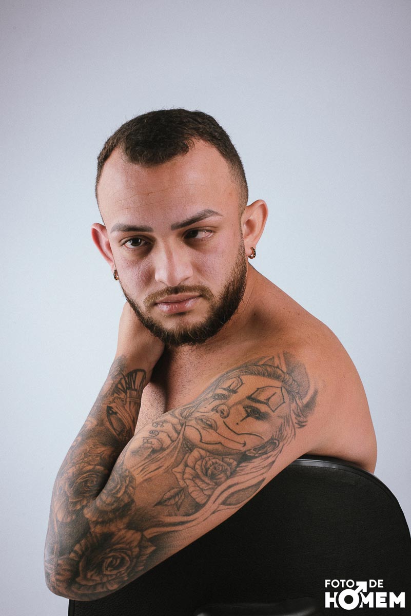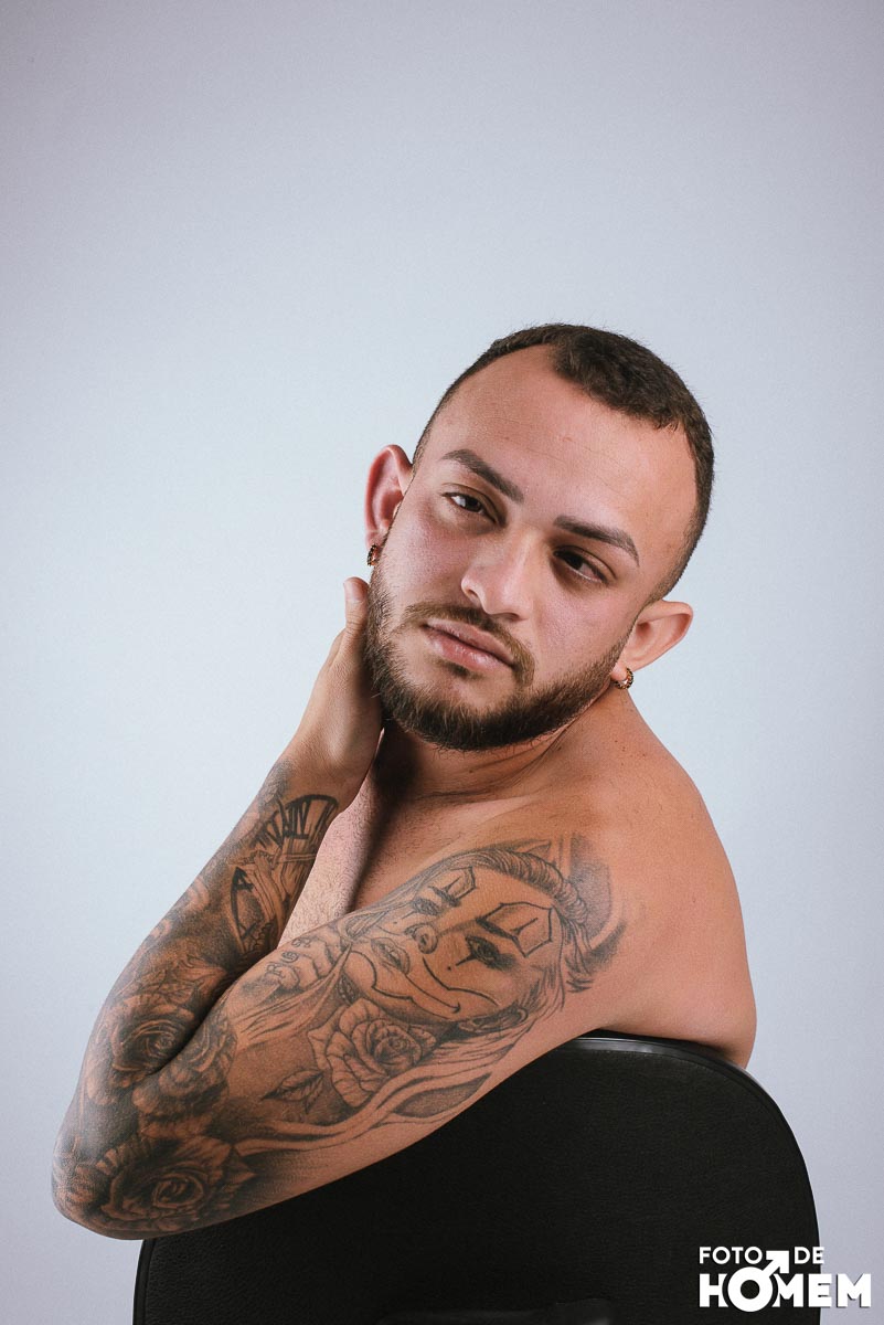 O ensaio desta semana é com o Mateus, fotografado no estúdio do Foto de Homem em Joinville (SC), em julho de 2023.