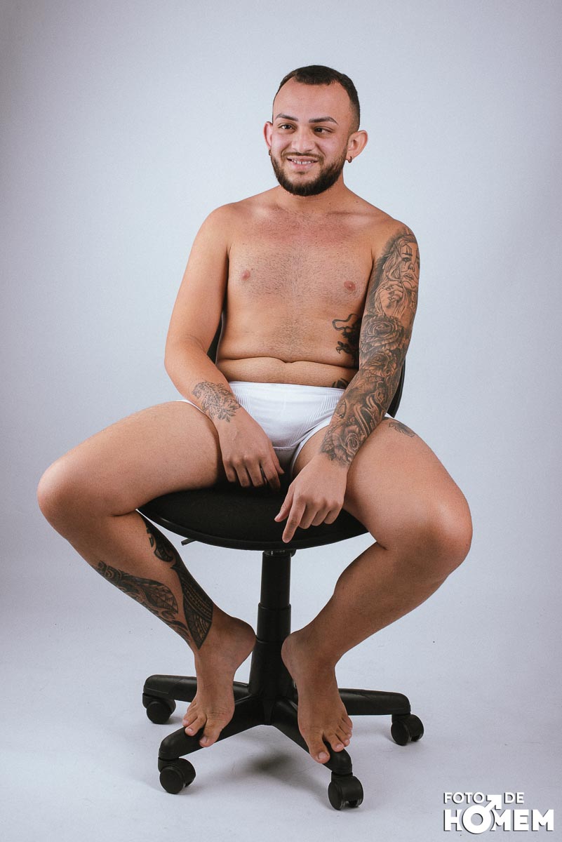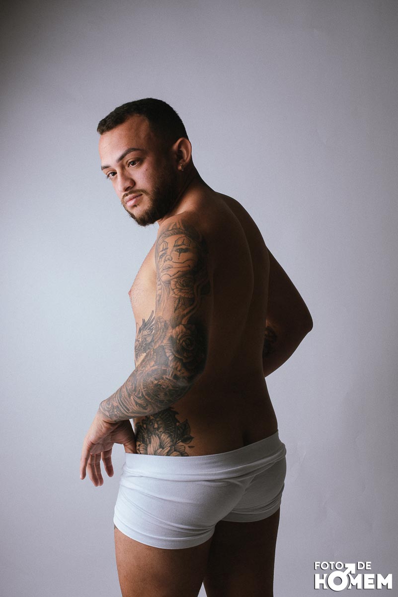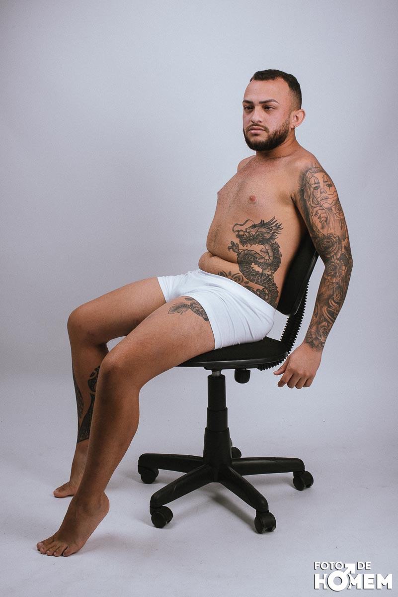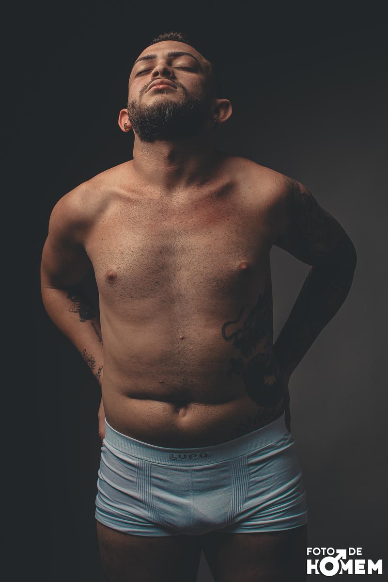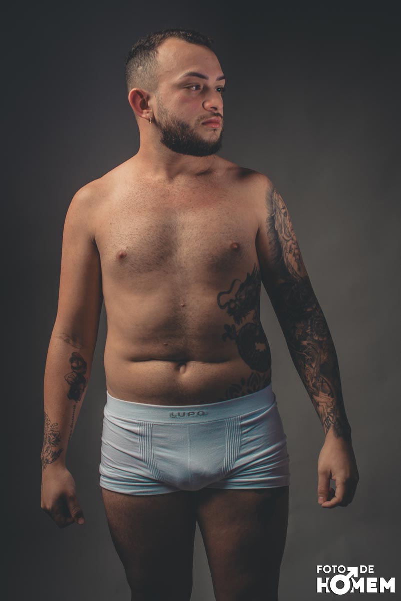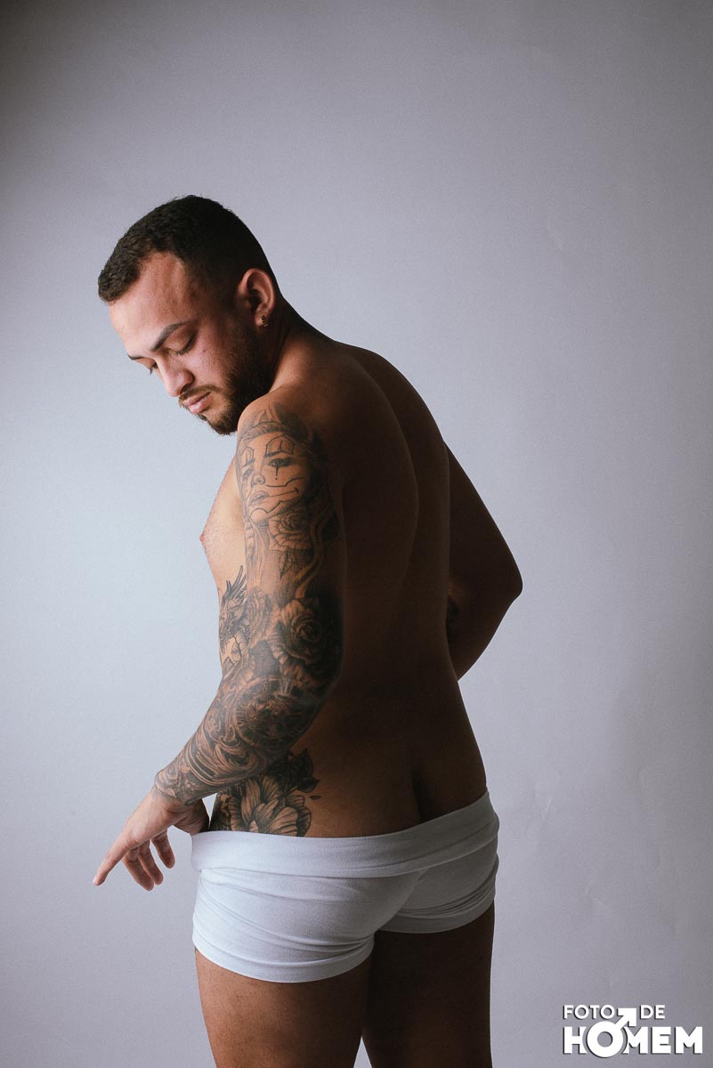 O ensaio desta semana é com o Mateus, fotografado no estúdio do Foto de Homem em Joinville (SC), em julho de 2023.