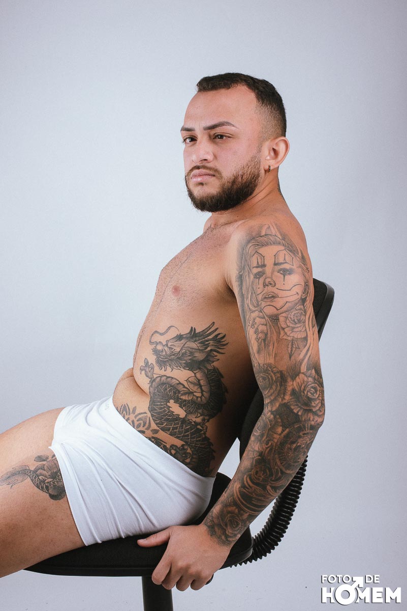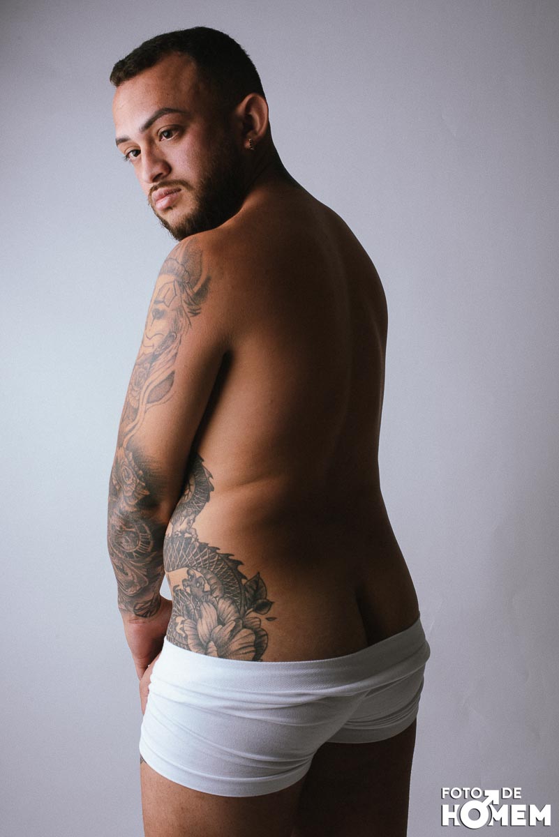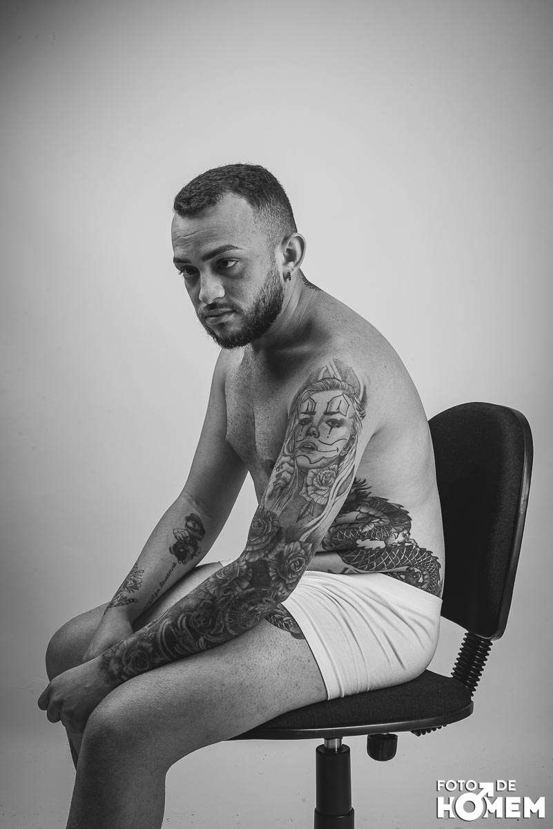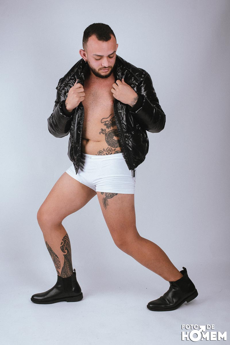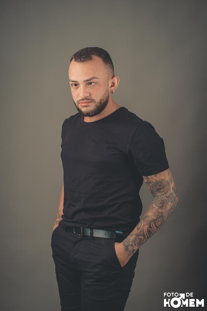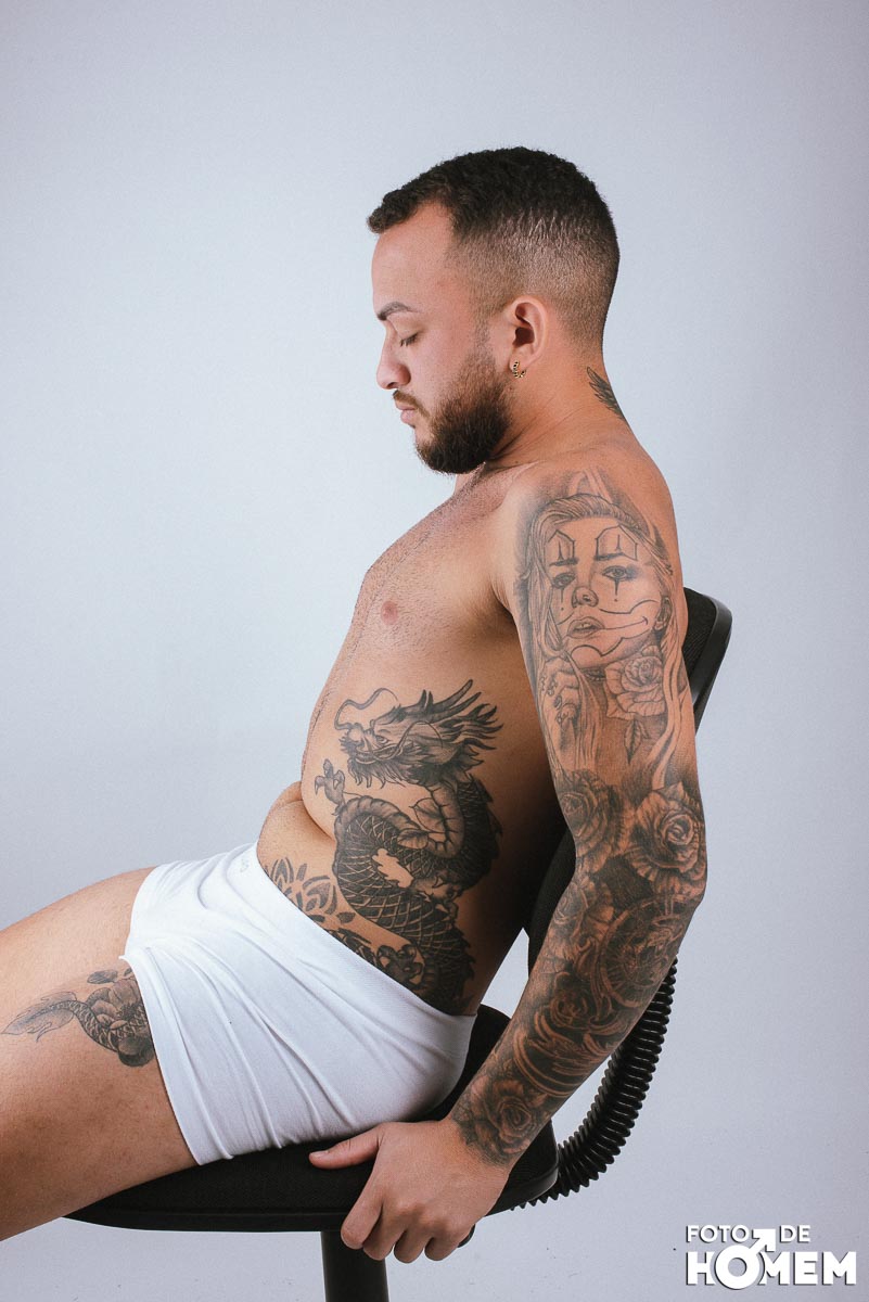 O ensaio desta semana é com o Mateus, fotografado no estúdio do Foto de Homem em Joinville (SC), em julho de 2023.