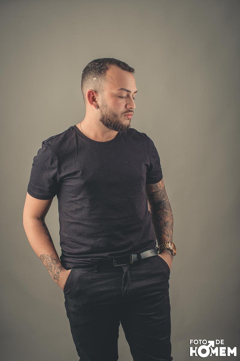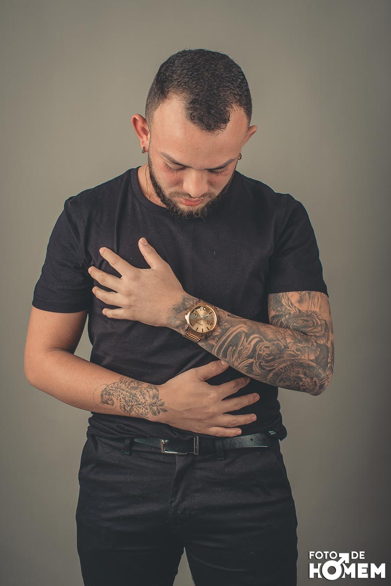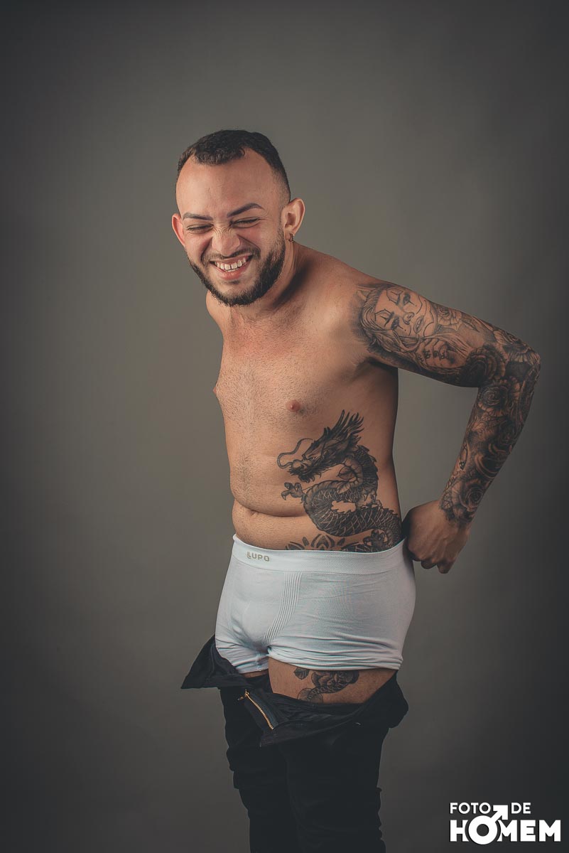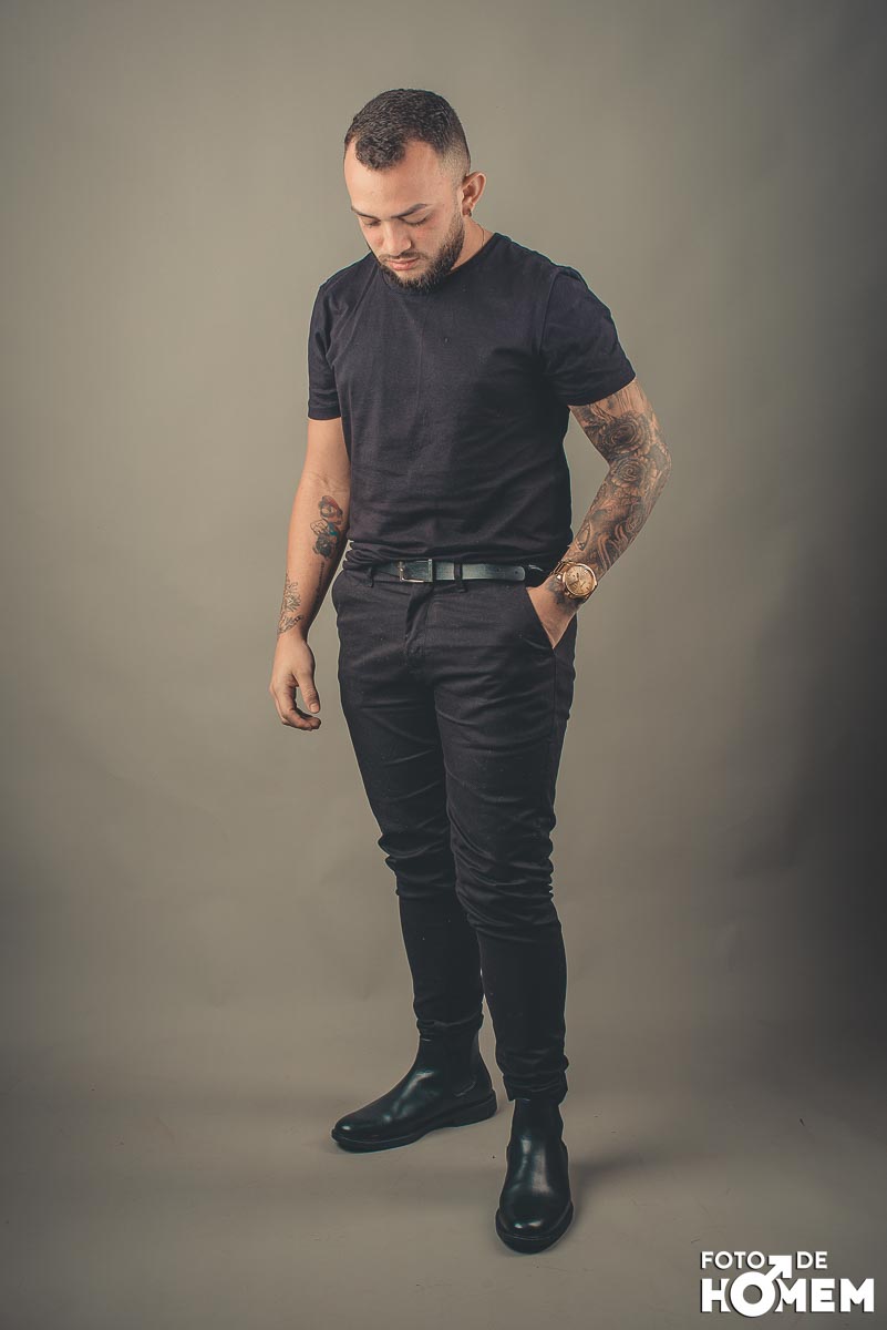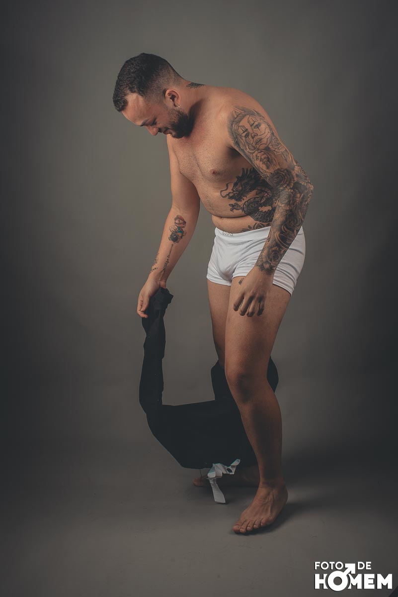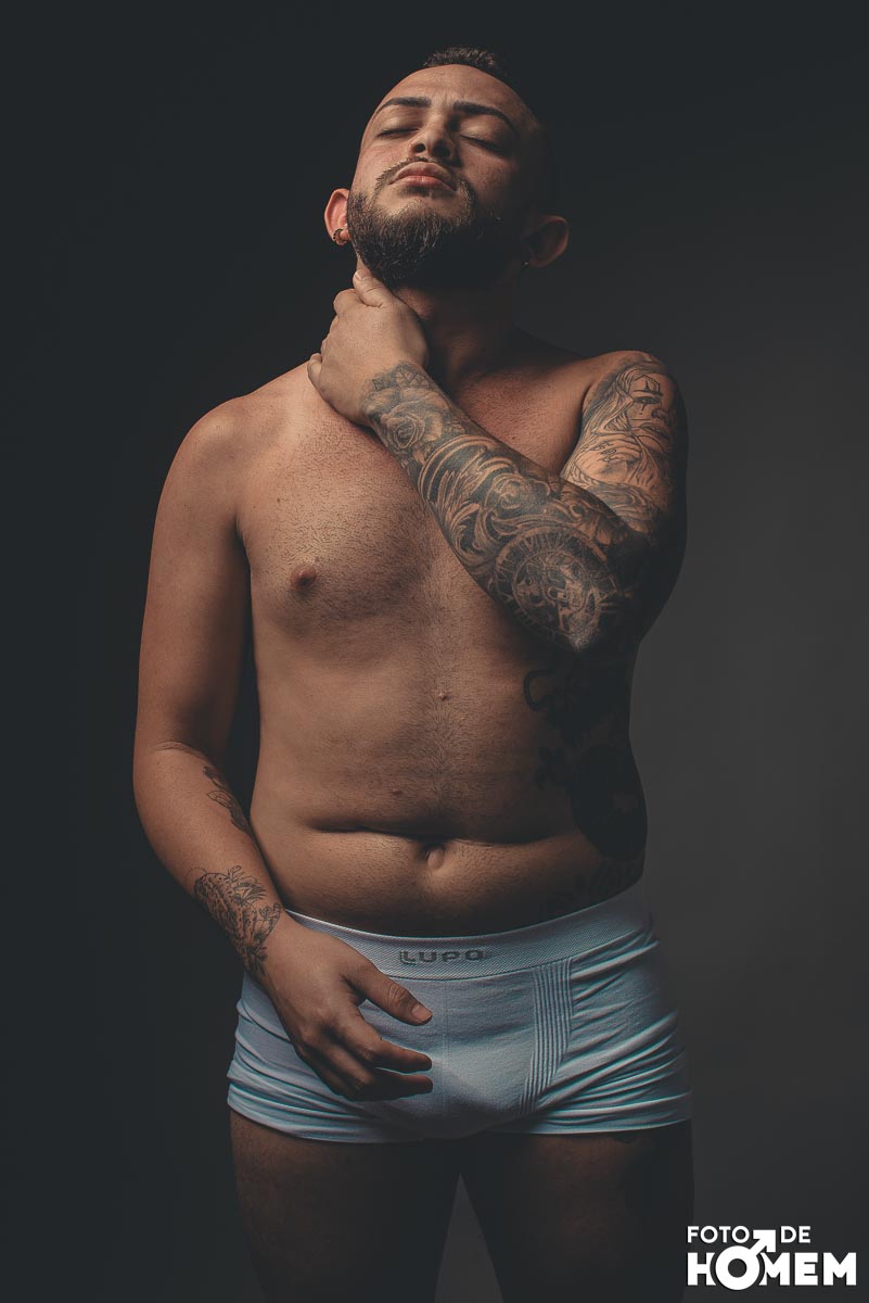 O ensaio desta semana é com o Mateus, fotografado no estúdio do Foto de Homem em Joinville (SC), em julho de 2023.