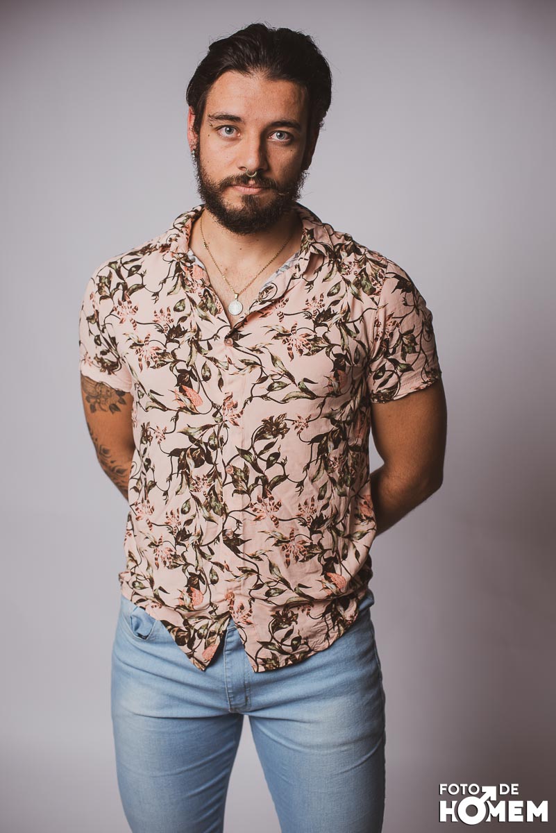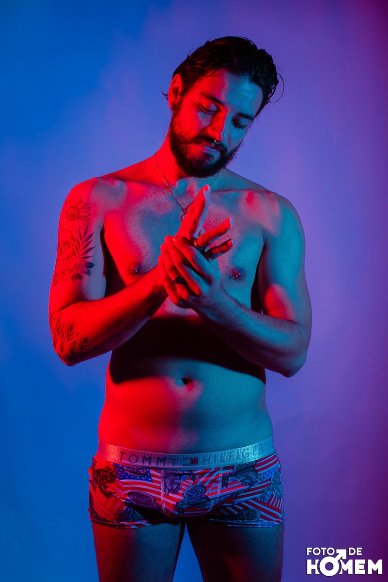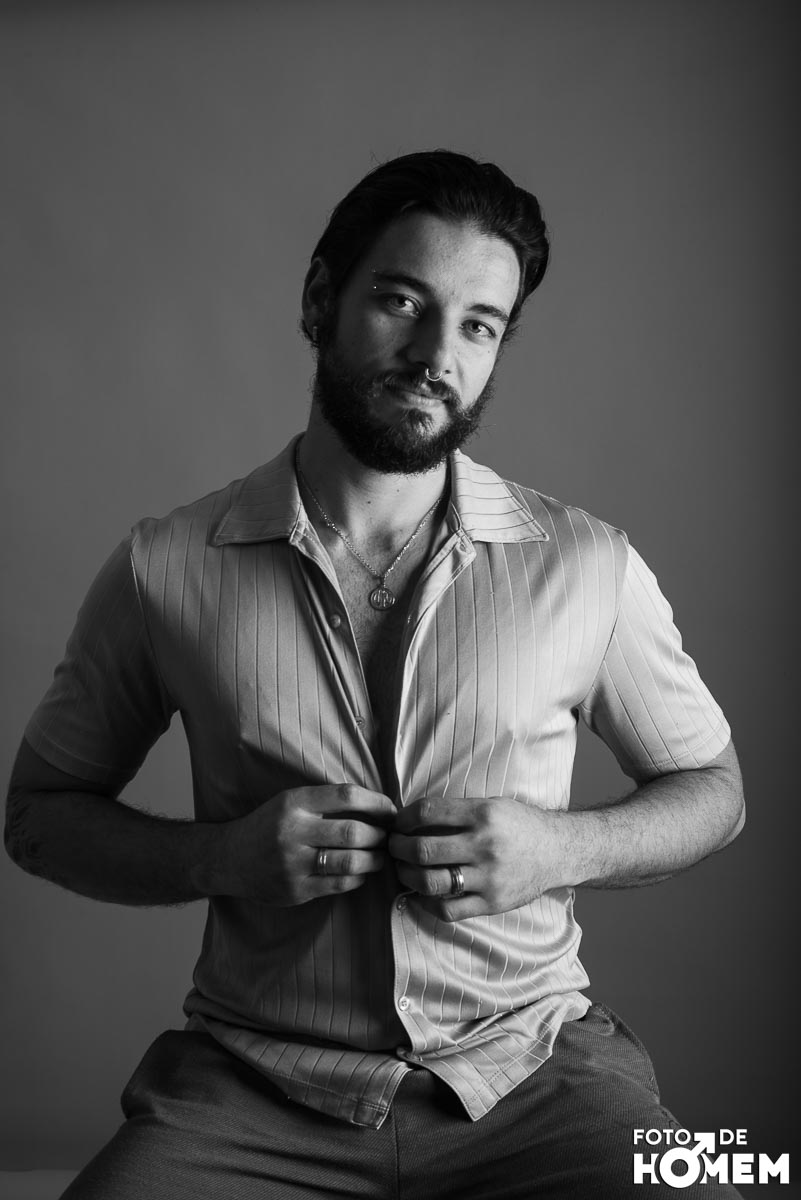 O ensaio desta semana é com o Elon, fotografado no estúdio do Foto de Homem em Joinville (SC), em julho de 2023.